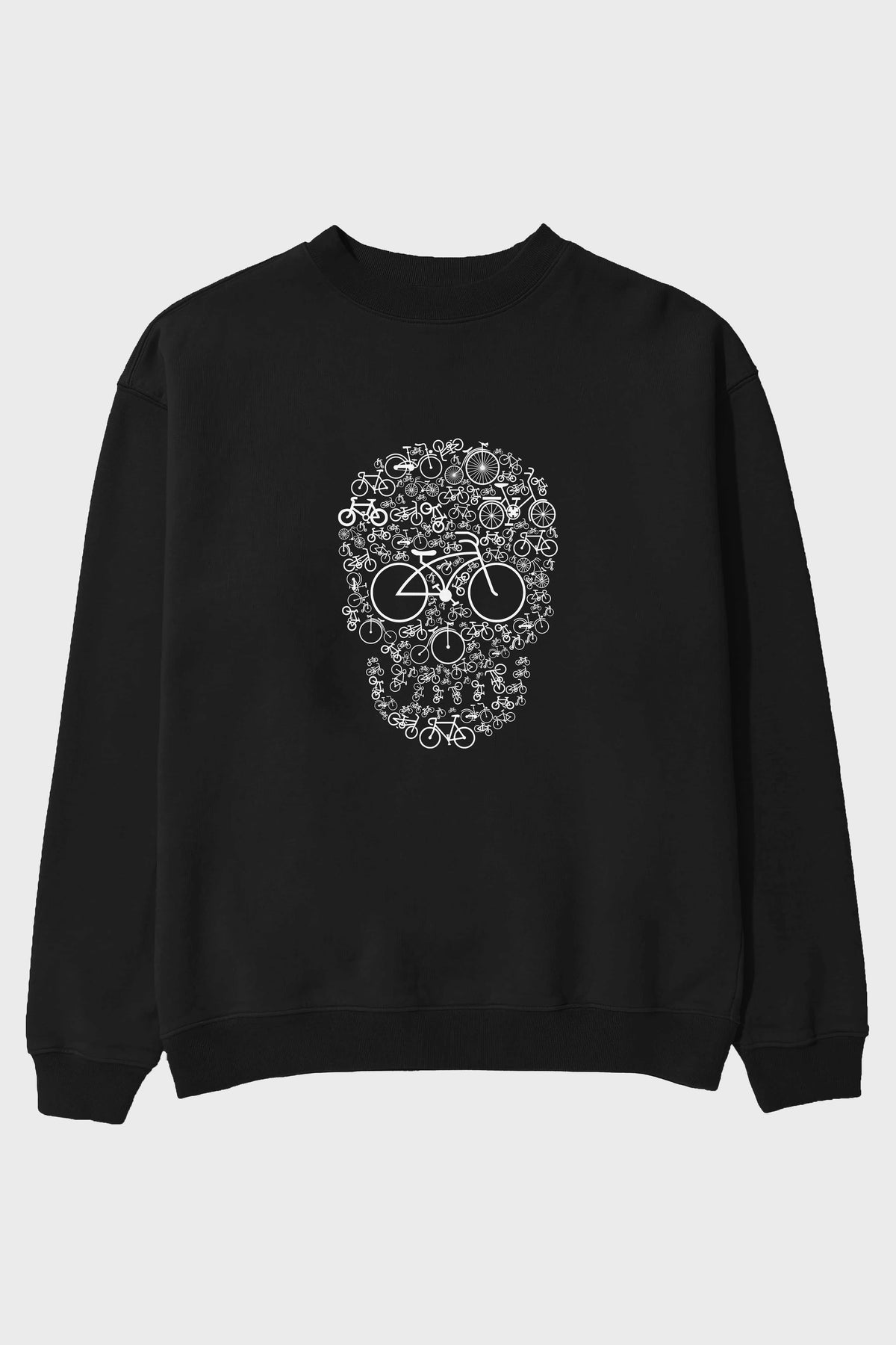 Bicycle Skull Ön Baskılı Oversize Sweatshirt Erkek Kadın Unisex