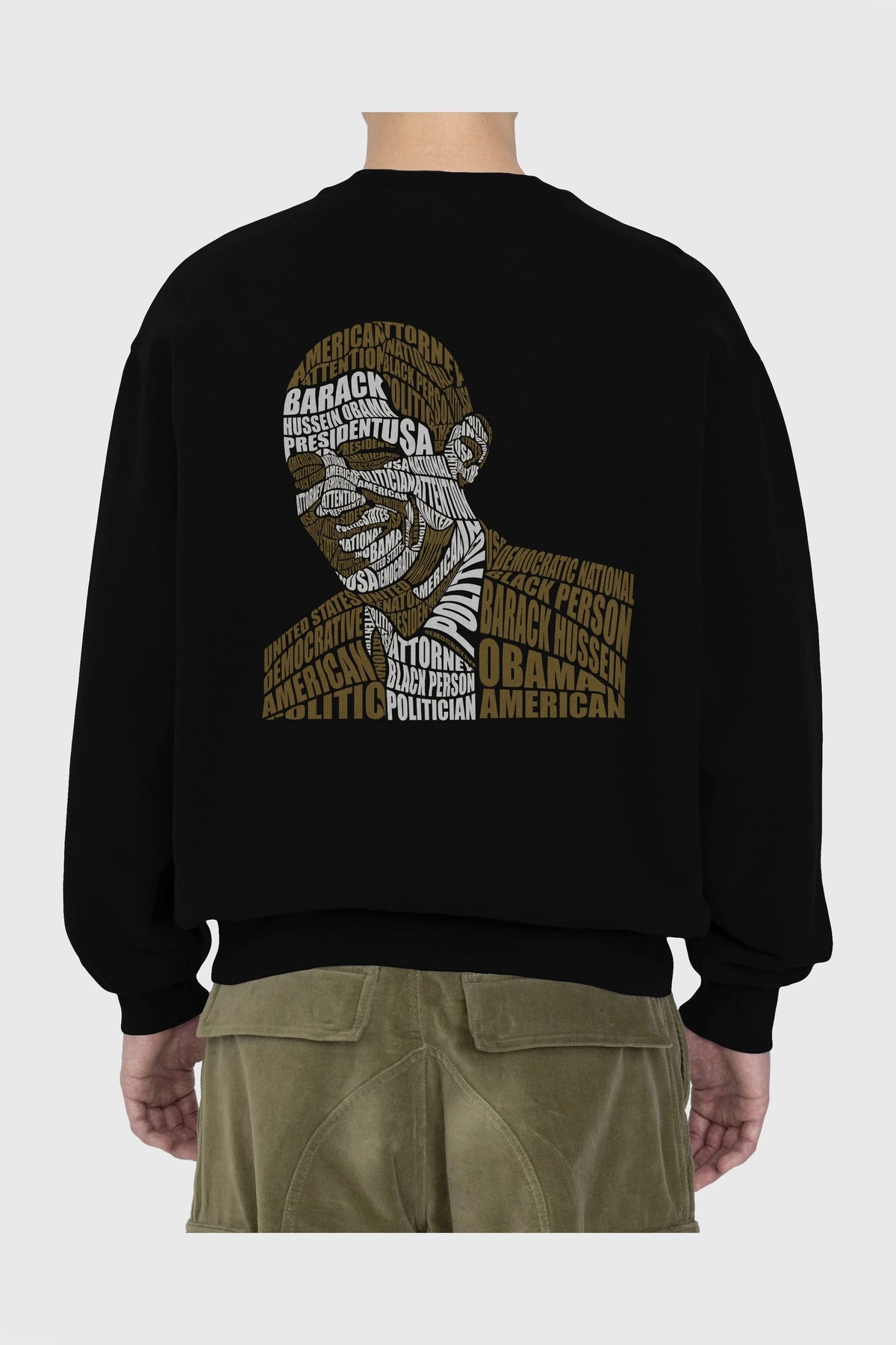 Obama Calligram Arka Baskılı Oversize Sweatshirt Erkek Kadın Unisex