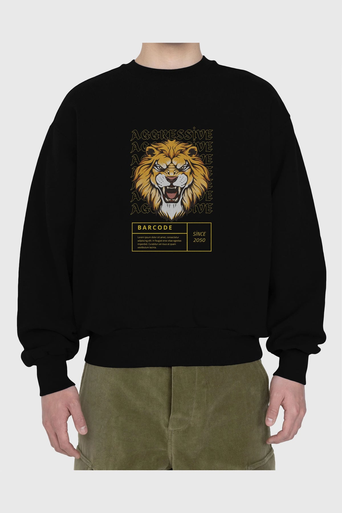 Aggressive Lion Ön Baskılı Oversize Sweatshirt Erkek Kadın Unisex