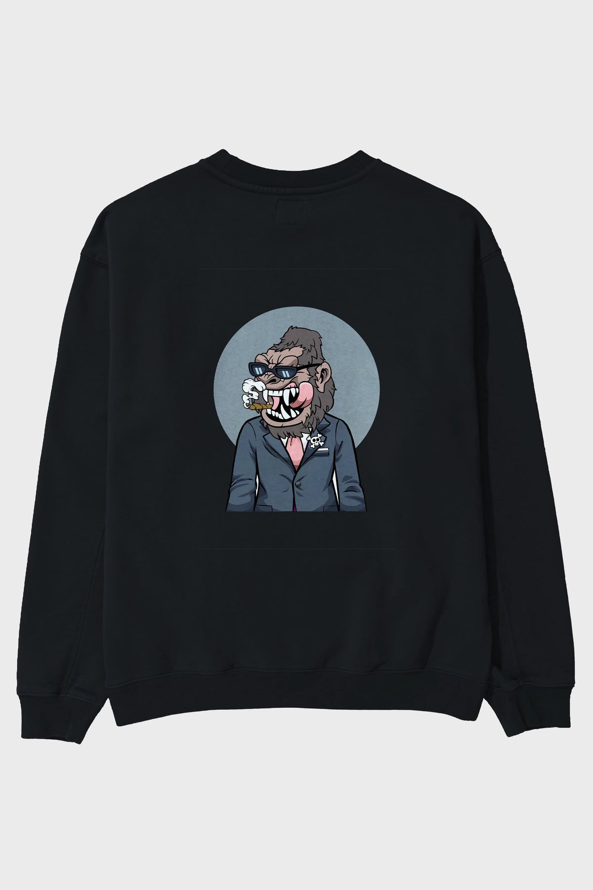 Monkey Suits Arka Baskılı Oversize Sweatshirt Erkek Kadın Unisex