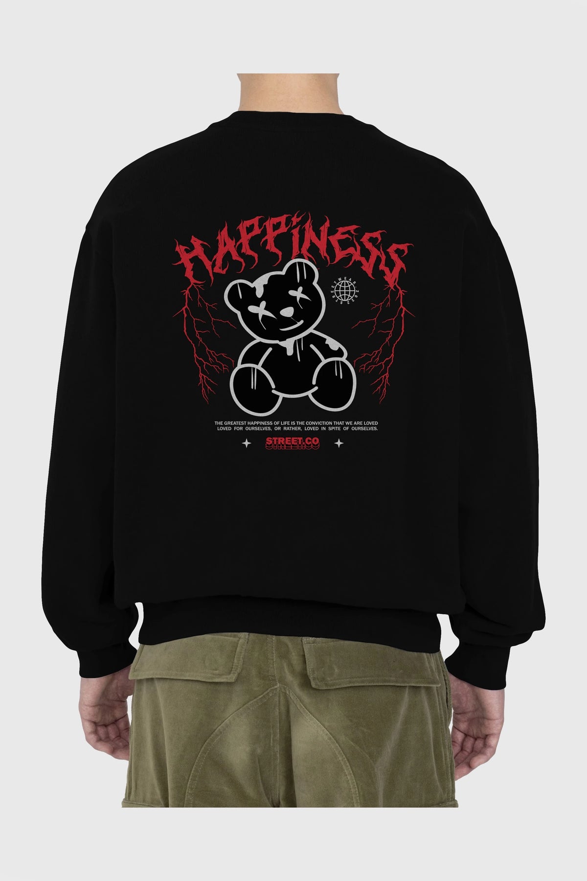 Happiness Bear Arka Baskılı Oversize Sweatshirt Erkek Kadın Unisex
