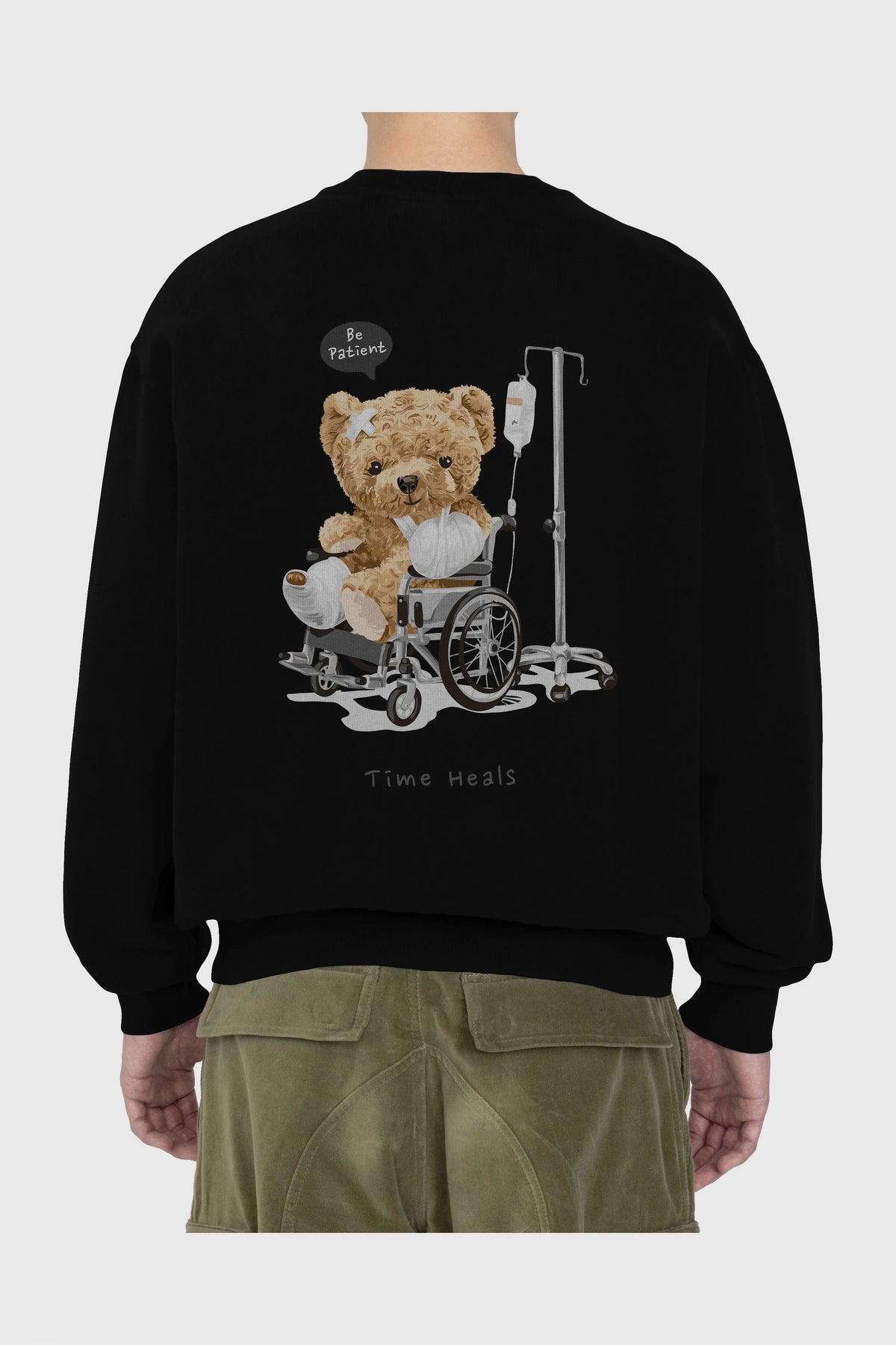 Teddy Bear Time Heals Arka Baskılı Oversize Sweatshirt Erkek Kadın Unisex