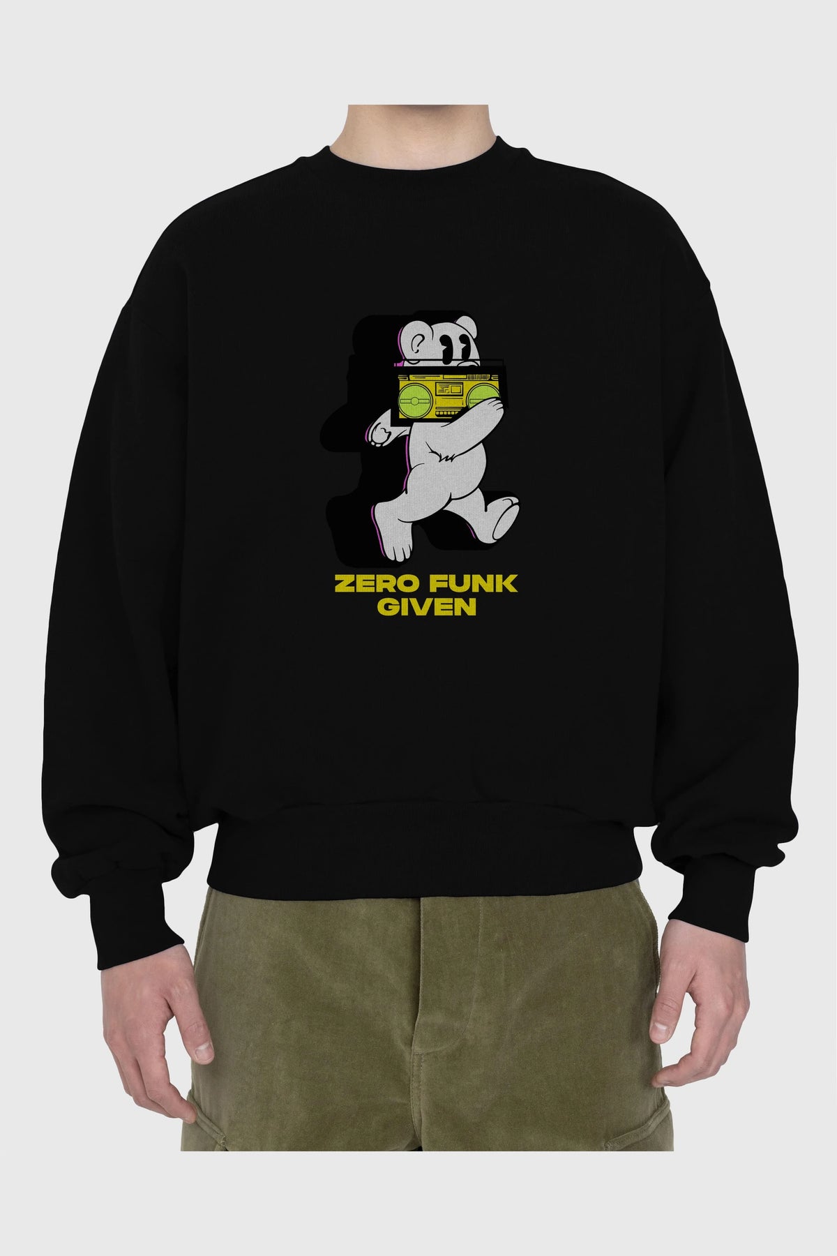 Zero Funk Given Bear Ön Baskılı Oversize Sweatshirt Erkek Kadın Unisex