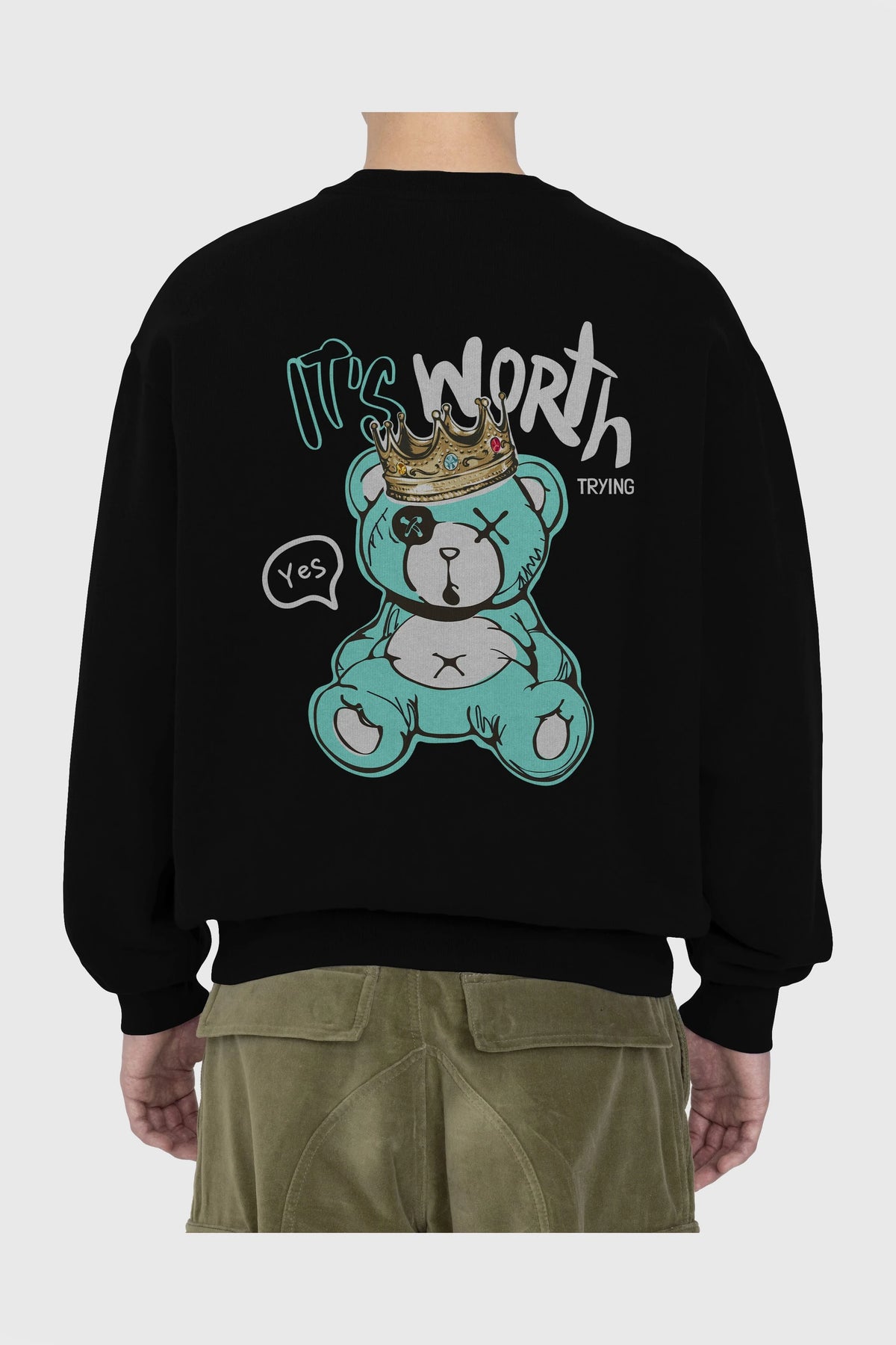its Worth Trying Bear Arka Baskılı Oversize Sweatshirt Erkek Kadın Unisex
