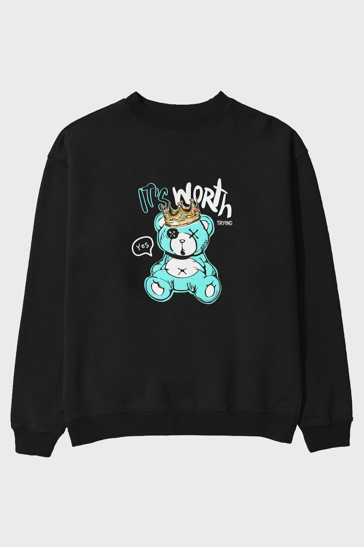 its Worth Trying Bear Ön Baskılı Oversize Sweatshirt Erkek Kadın Unisex