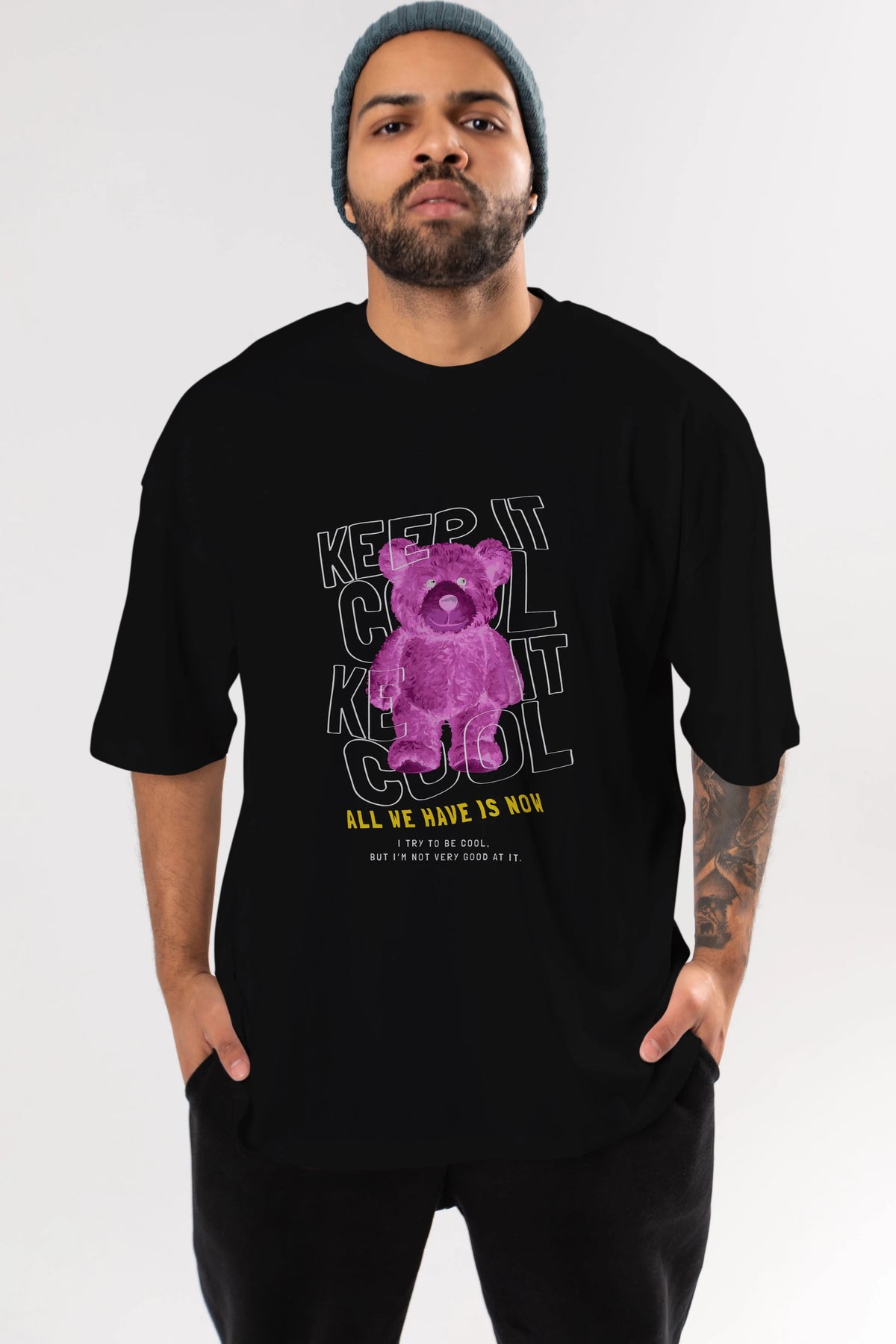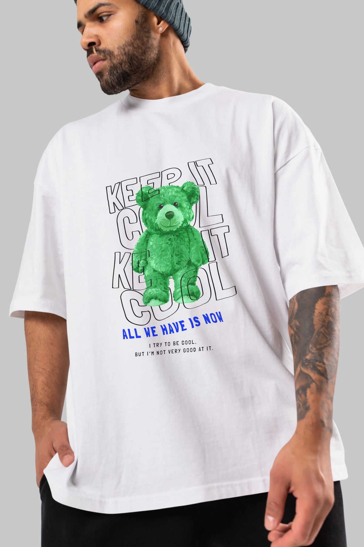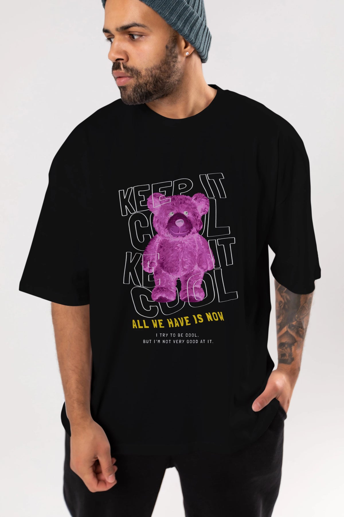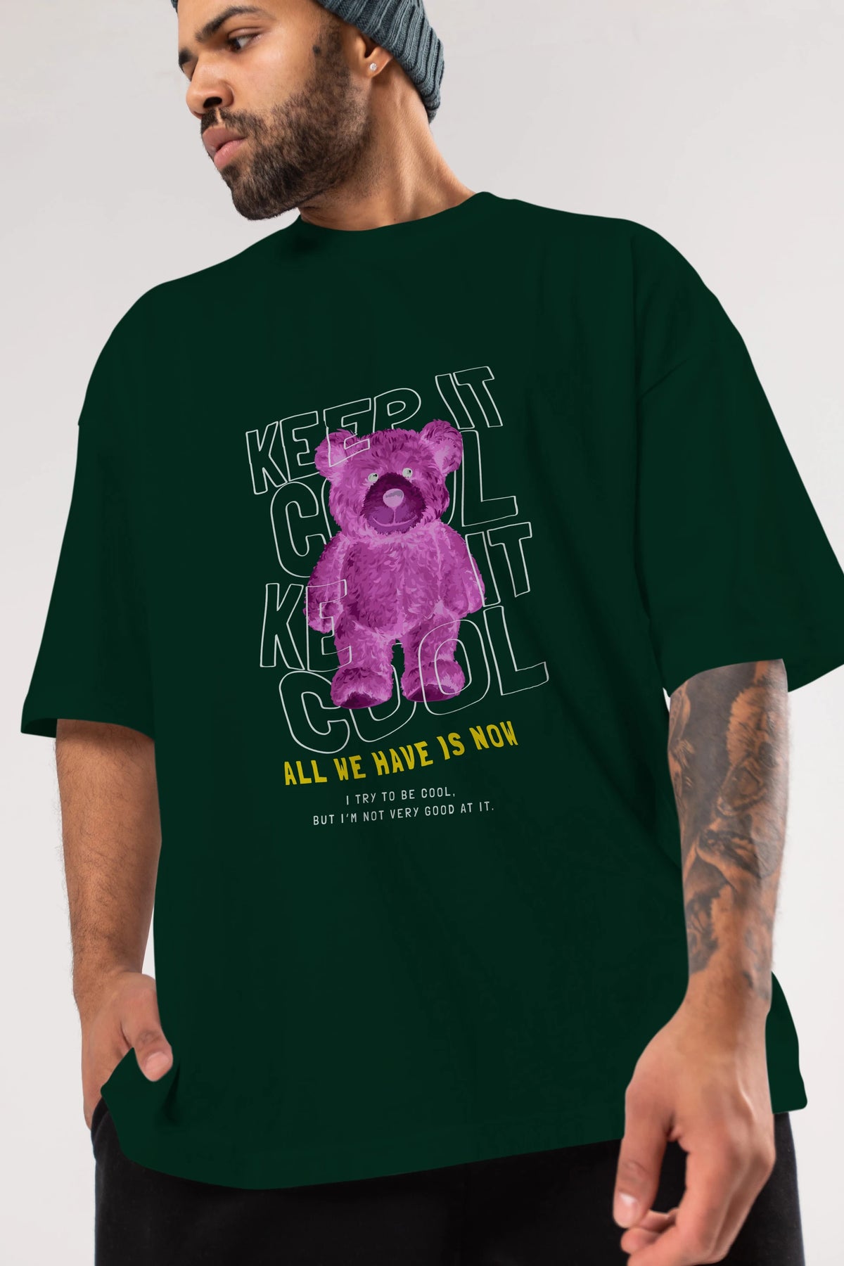 Keep it Cool Bear Ön Baskılı Oversize t-shirt Erkek Kadın Unisex