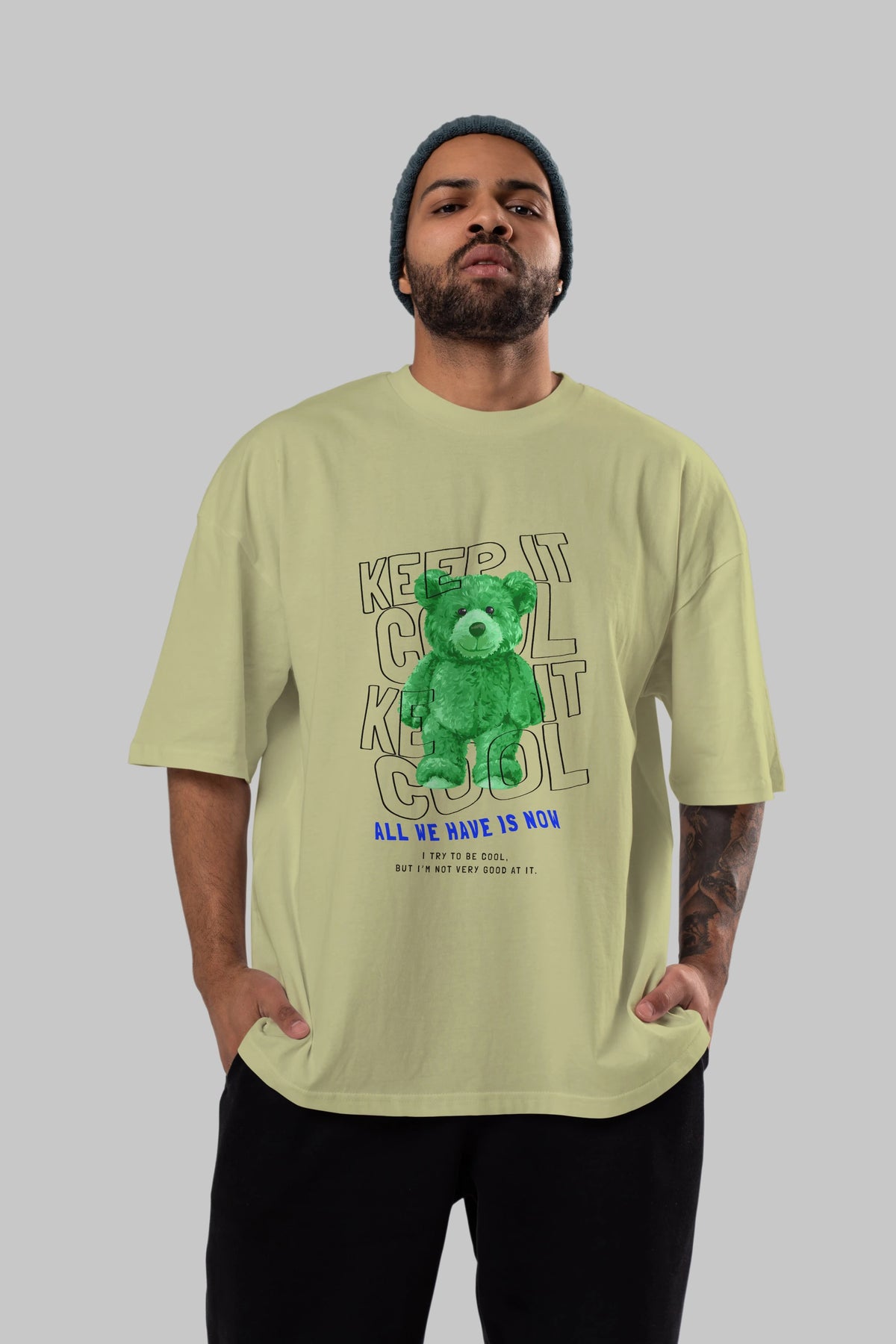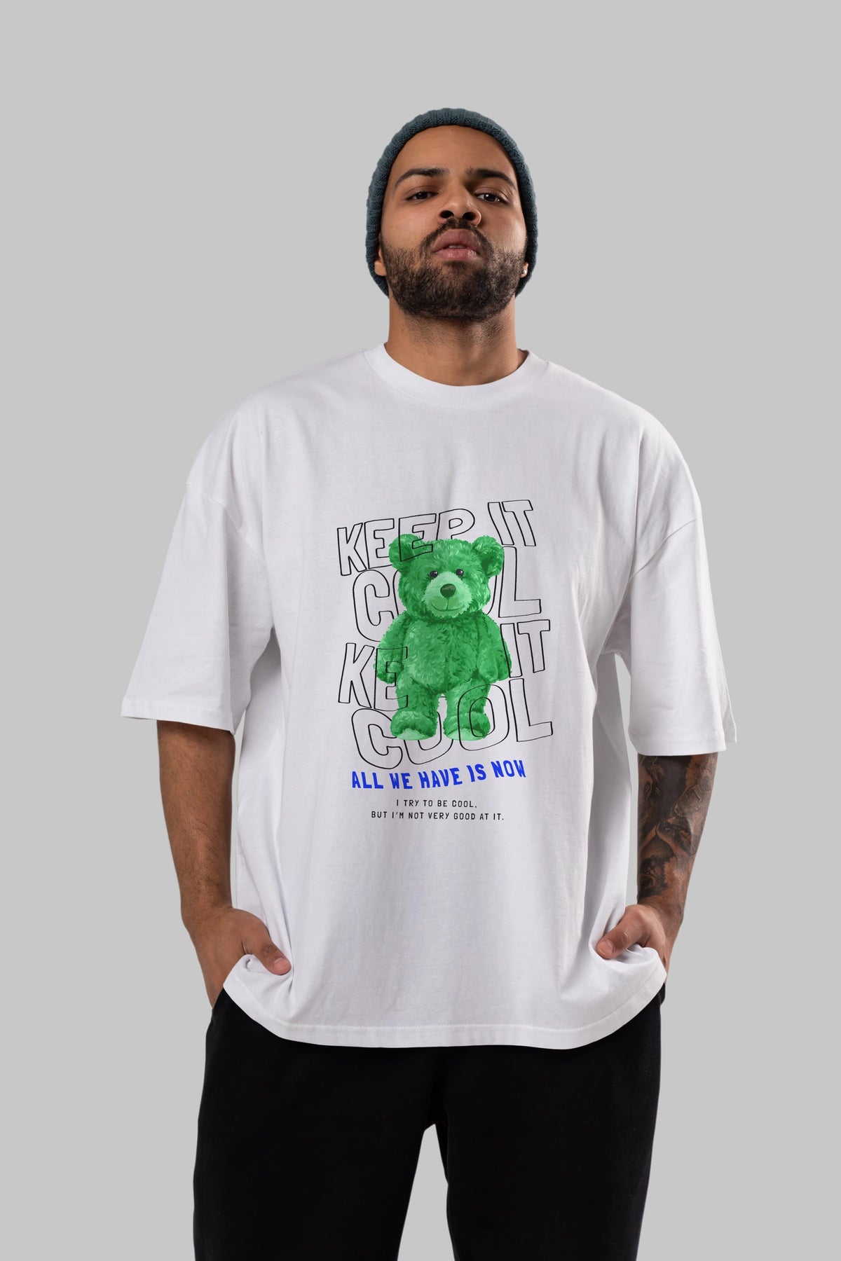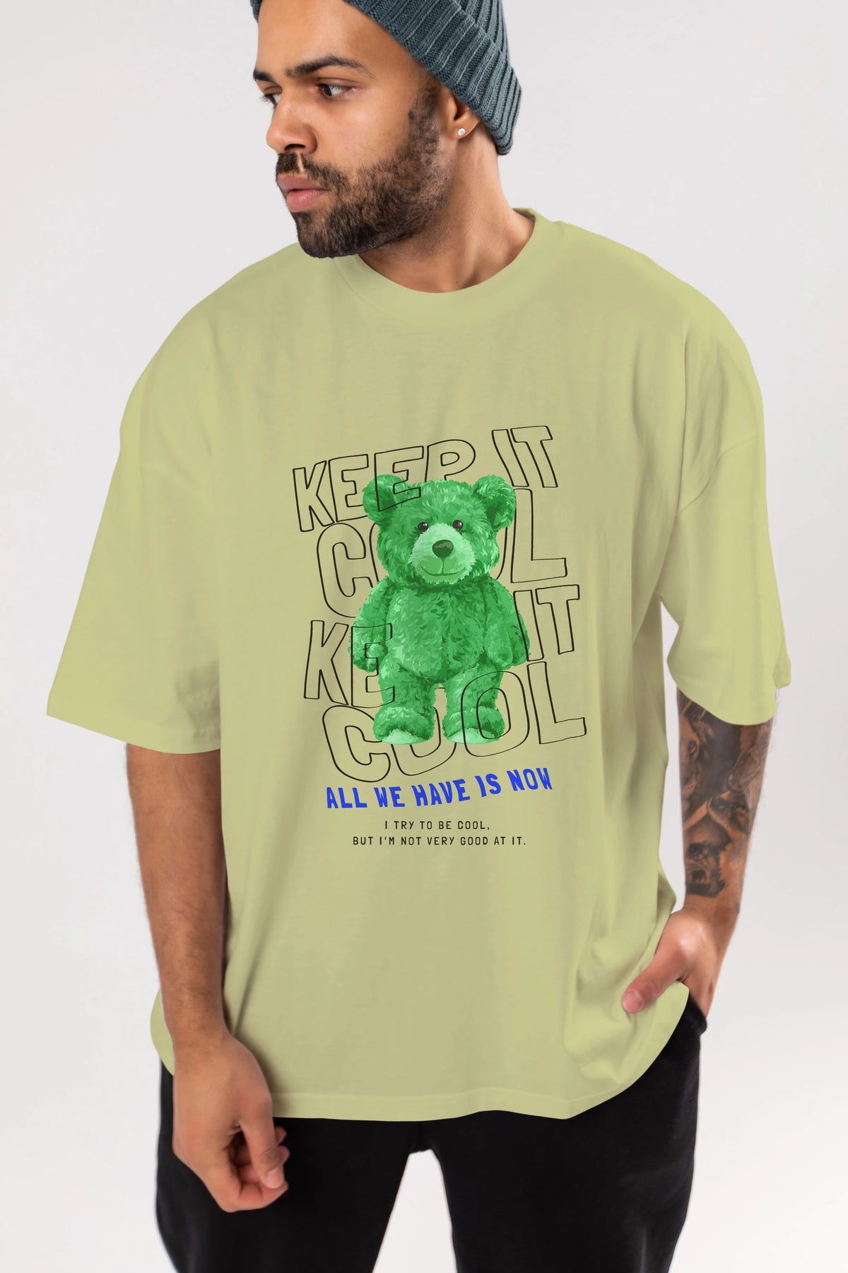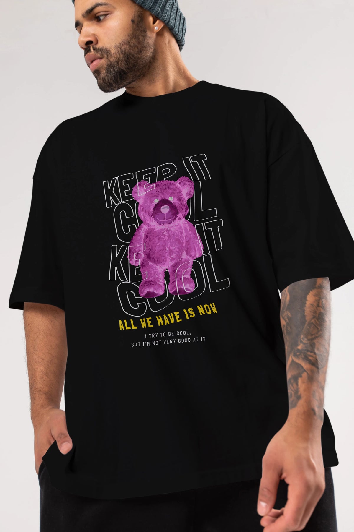 Keep it Cool Bear Ön Baskılı Oversize t-shirt Erkek Kadın Unisex